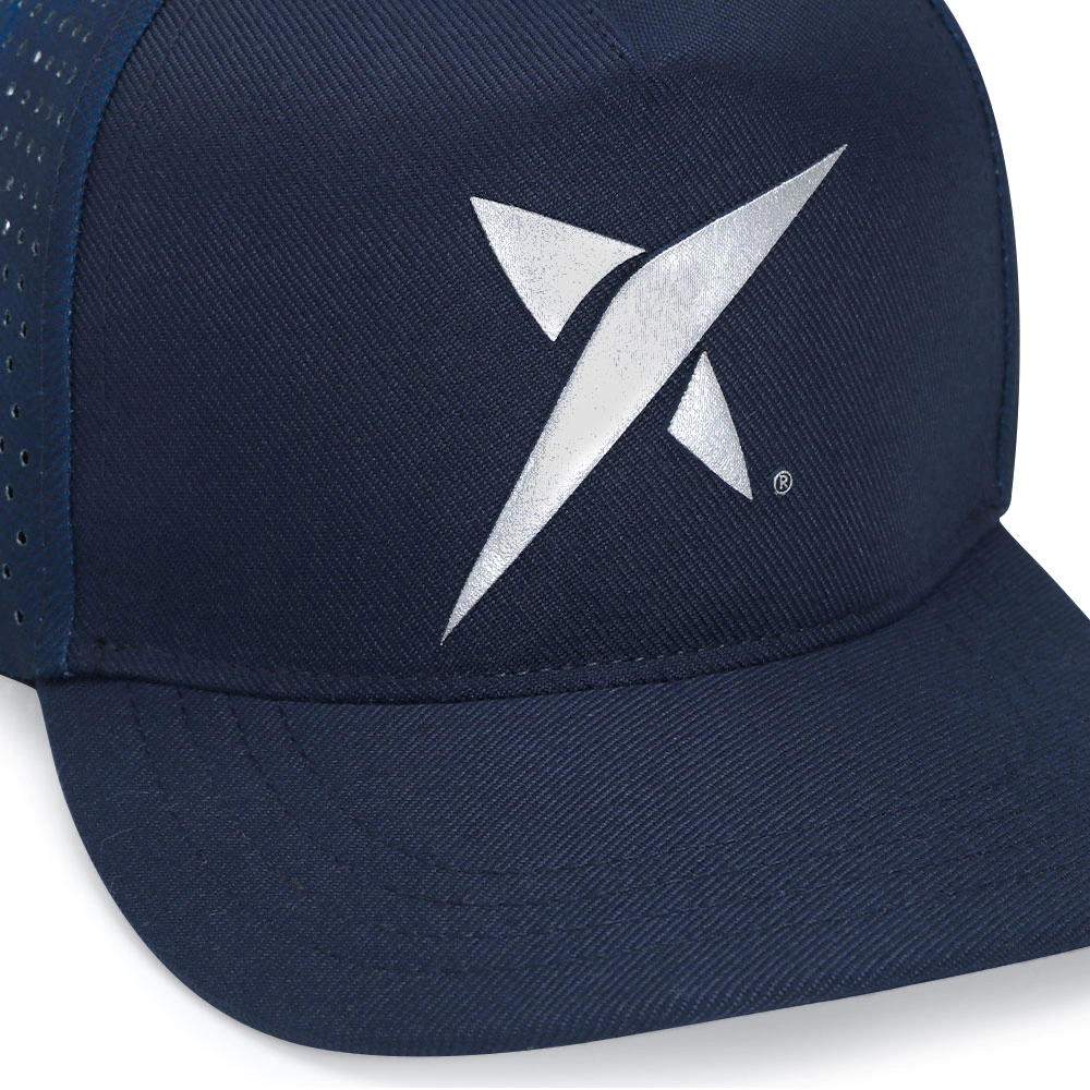 O Boné Drop Shot Player Marinho e Prata é um modelo Premium Trucker com furaço Laser e logo emborrachado em alto destaque na parte frontal.