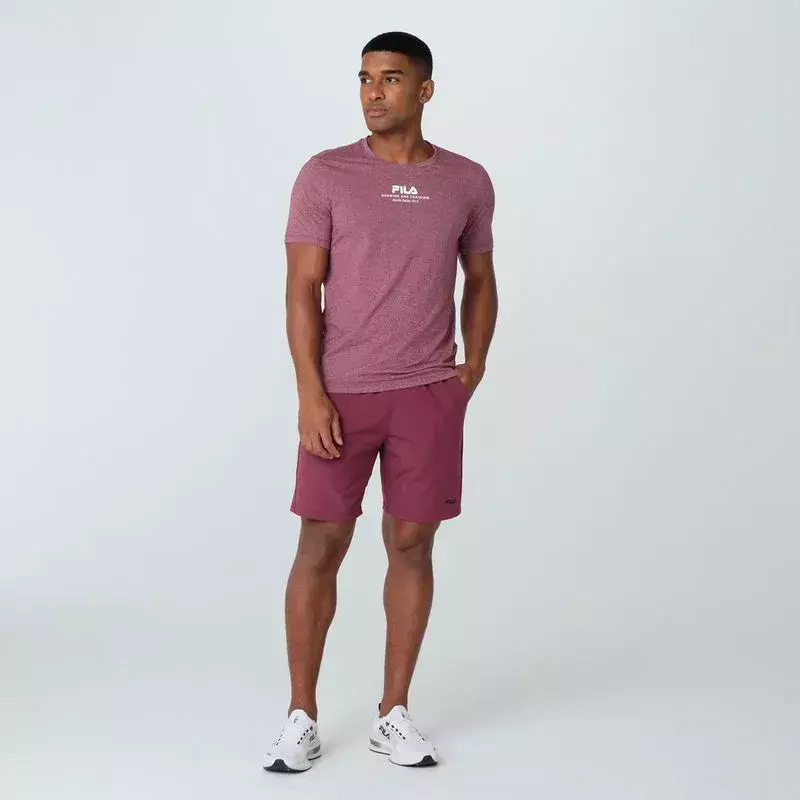 Camiseta masculina confeccionada em malha mista texturizada com 50% de poliéster e 50% de algodão, indicada para treinos de média e baixa intensidade. Modelagem regular com manga curta e gola careca pespontada. Possui estampas gráficas variadas na parte frontal e traseira.