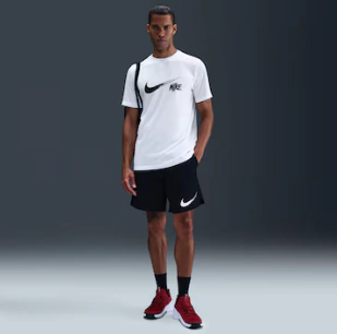 Esta camiseta leve é feita com tecido respirável, pêssego para maior maciez. Tecnologia Nike Dri-FIT absorve o suor da sua pele para evaporação mais rápida, ajudando a mantê-lo seco e confortável.