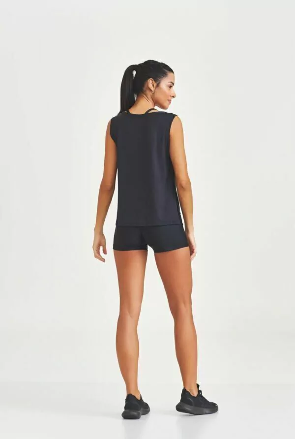 O design com aberturas laterais não só adiciona um toque de modernidade e estilo, mas também oferece maior liberdade de movimento, tornando-a ideal para exercícios de maior intensidade ou simplesmente para garantir conforto e frescor no dia a dia.