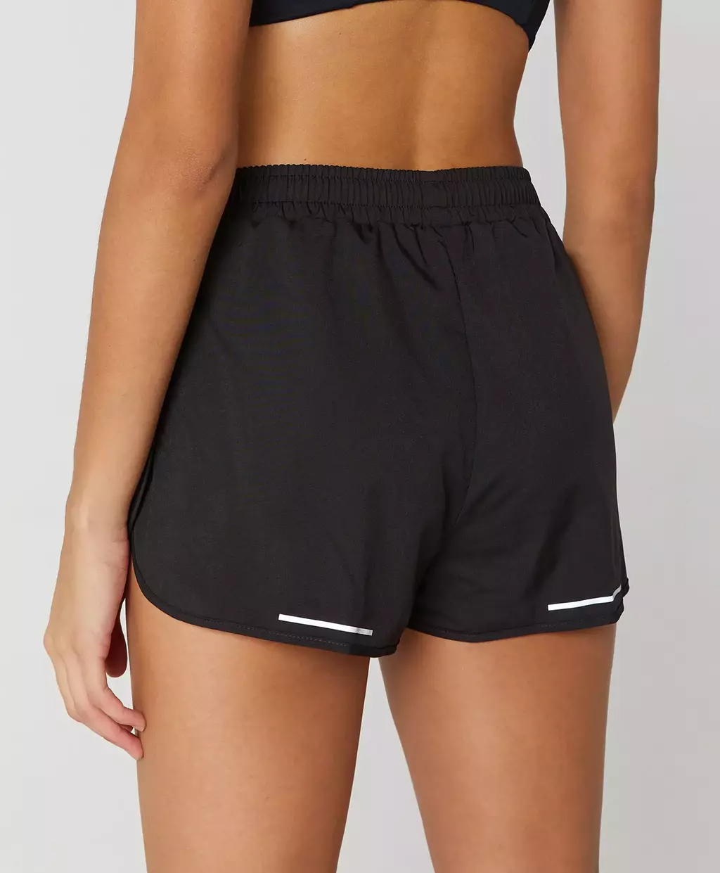 Cós franzido com elástico e cordão interno personalizado, detalhes refletivos, bolso interno para chaves e aberturas laterais para maior respirabilidade e liberdade de movimento.