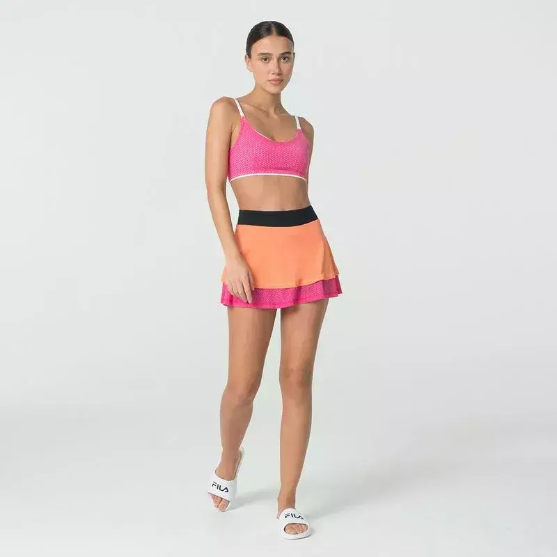 Top feminino confeccionado em malha telada de poliamida e malha lisa de poliamida no viés e no recorte das costas. Modelagem com decote nas costas bem aberto para evitar marcas de sol. Produto ecológico com certificado Oeko-Tex, que testifica o não uso de químicos nocivos na sua fabricação. Seu tecido contém as tecnologias FLOW, que proporciona rápida secagem e evasão do suor; a tecnologia exclusiva PERFORMA, que proporciona a compressão perfeita para liberdade de movimento e performance, sem perder o conforto; a BIOTECH que controla a proliferação de bactérias, evitando o odor da transpiração; e a UV PROTECTION, que oferece proteção solar FPS 50+ dos raios UVA e UVB. Possui alças finas reguláveis em viés, decote levemente em V, cós com elástico aparente, pence frontal e logo F-Box centralizado no recorte traseiro.