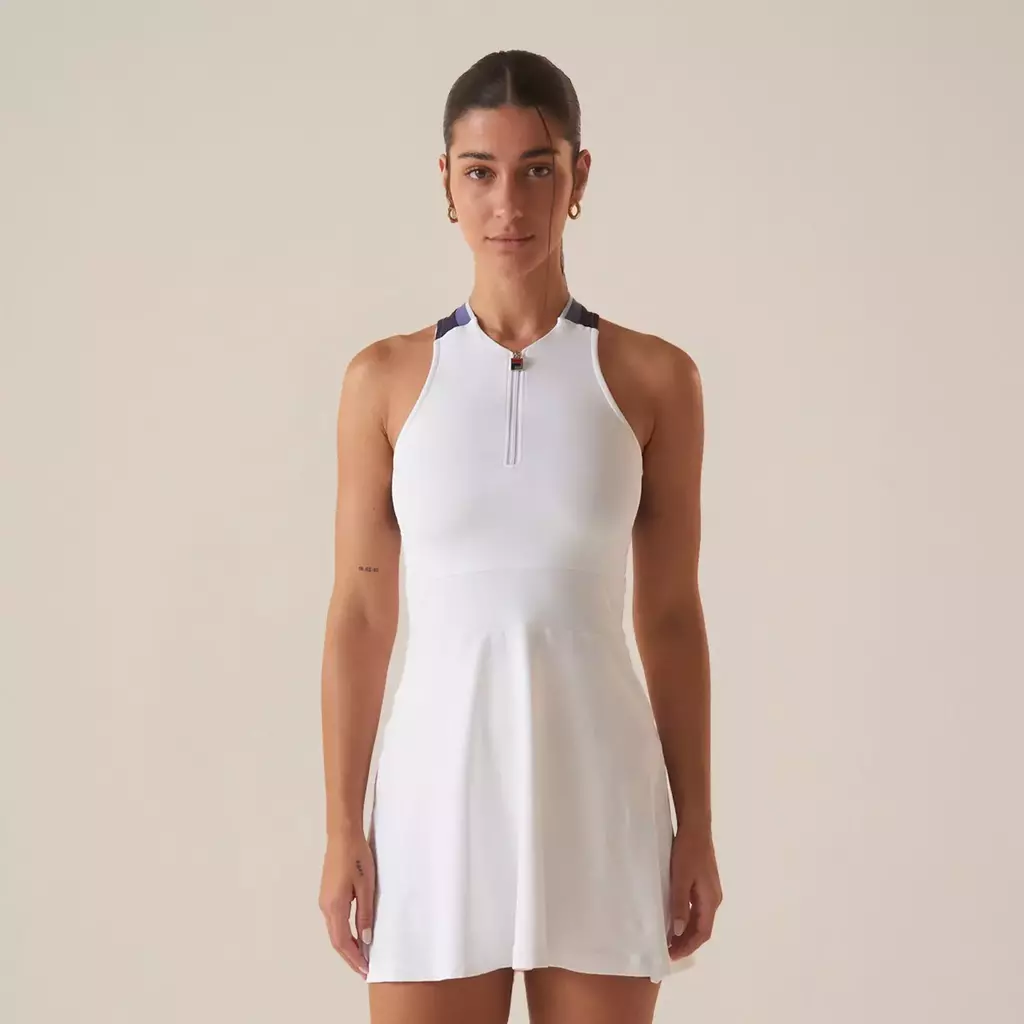 O Vestido Feminino FILA Match AO combina elegância e conforto com modelagem slim e saia evasê.